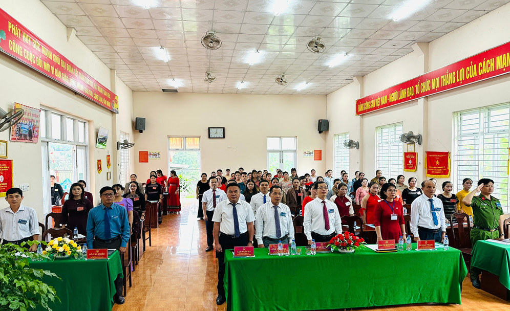 Đại biểu thực hiện nghi lễ chào cờ tại Đại hội đại biểu phụ nữ xã Sơn Thủy lần thứ I, nhiệm kỳ 2025-2030