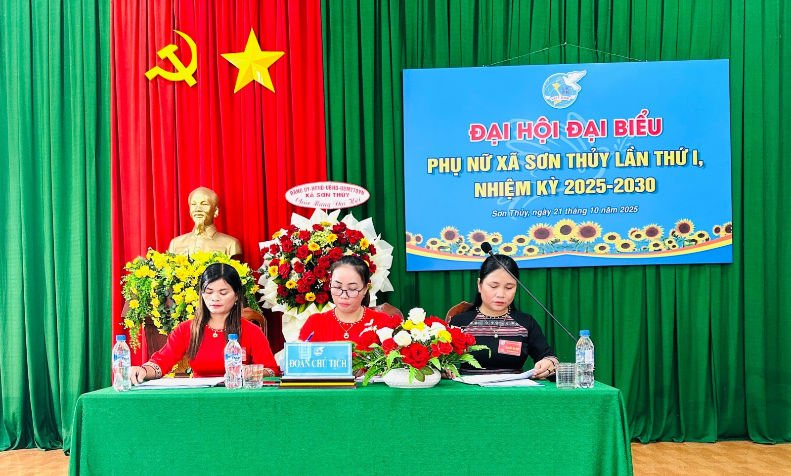 Sáng ngày 21/10/2025, Hội Liên hiệp phụ nữ xã Sơn Thủy long trọng tổ chức Đại hội đại biểu phụ nữ xã Sơn Thủy lần thứ I, nhiệm kỳ 2025-2030. Về dự đại hội có đồng chí Đinh Thị Minh Sáng, Phó Bí thư thường trực Đảng ủy; đồng chí Lê Quốc Vũ, Phó Bí thư Đảng uỷ, Chủ tịch UBND xã; đồng chí Lê Ngọc Trang, UVBTV, Phó Chủ tịch HĐND xã; đồng chí Lưu Xuân Hà, UVBTV, Chủ tịch UBMTTQVN xã và các đồng chí trong Ban Thường vụ Đảng uỷ, đại diện lãnh đạo các cơ quan tham mưu giúp việc Đảng ủy, đại diện lãnh đạo Mặt trận và các tổ chức chính trị - xã hội, đại diện lãnh đạo các cơ quan, đơn vị, nguyên lãnh đạo Hội LHPN xã qua các thời kỳ và gần 100 đại biểu chính thức dự đại hội, đại diện cho hơn 2.271 hội viên trong toàn xã.