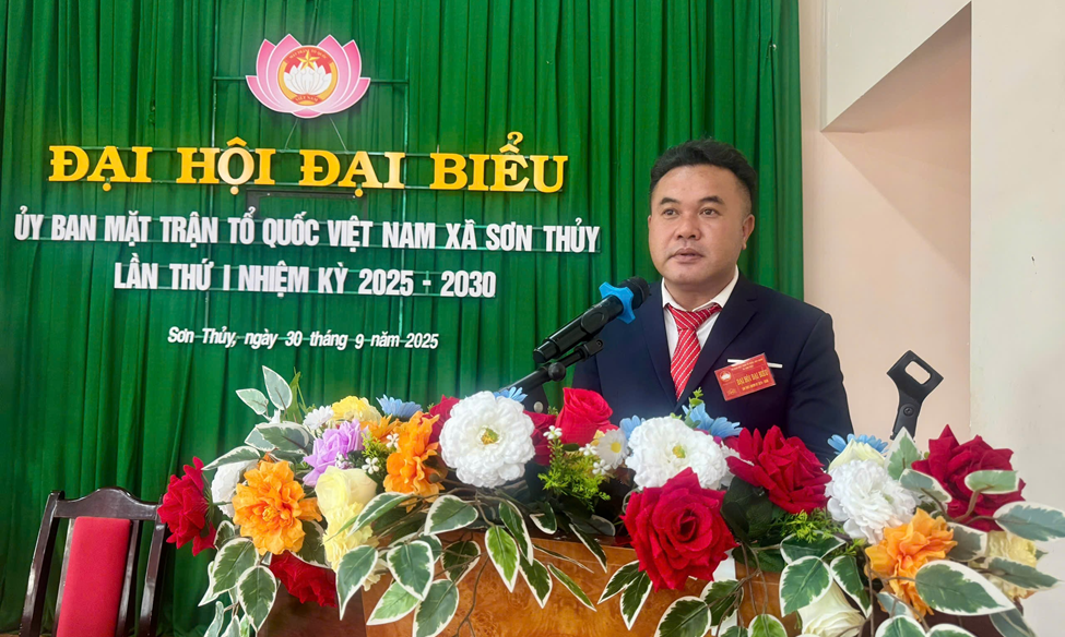 Với tinh thần “Đoàn kết - Dân chủ - Đổi mới – Phát triển”, Đại hội đã hiệp thương cử ra 53 vị tham gia Ủy ban MTTQ Việt Nam xã Sơn Thuỷ, nhiệm kỳ 2025 – 2030 và bầu 01 đại biểu chính thức tham dự Đại hội đại biểu MTTQ Việt Nam tỉnh. Ông Lưu Xuân Hà tái đắc cử chức danh Chủ tịch Ủy ban MTTQ Việt Nam xã Sơn Thuỷ khoá I, nhiệm kỳ 2025 – 2030.