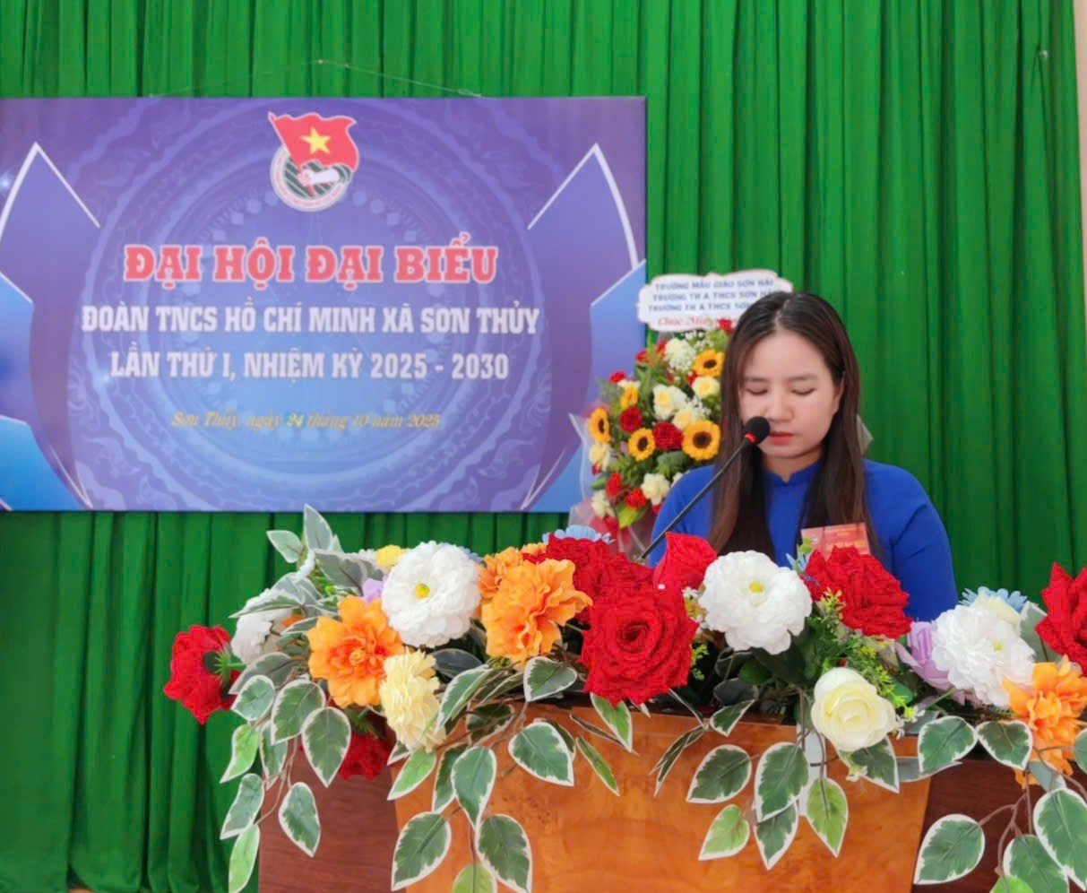 Đại hội đã thông qua Quyết định chỉ định Ban Chấp hành Đoàn TNCS Hồ Chí Minh xã Sơn Thuỷ lần thứ I, nhiệm kỳ 2025-2030 gồm 25 đồng chí; Ban Thường vụ gồm 07 đồng chí; Ban Kiểm tra gồm 05 đồng chí. Đồng chí Đinh Thị Thơ được tín nhiệm giữ chức Bí thư Đoàn TNCS Hồ Chí Minh xã Sơn Thủy nhiệm kỳ 2025 - 2030.