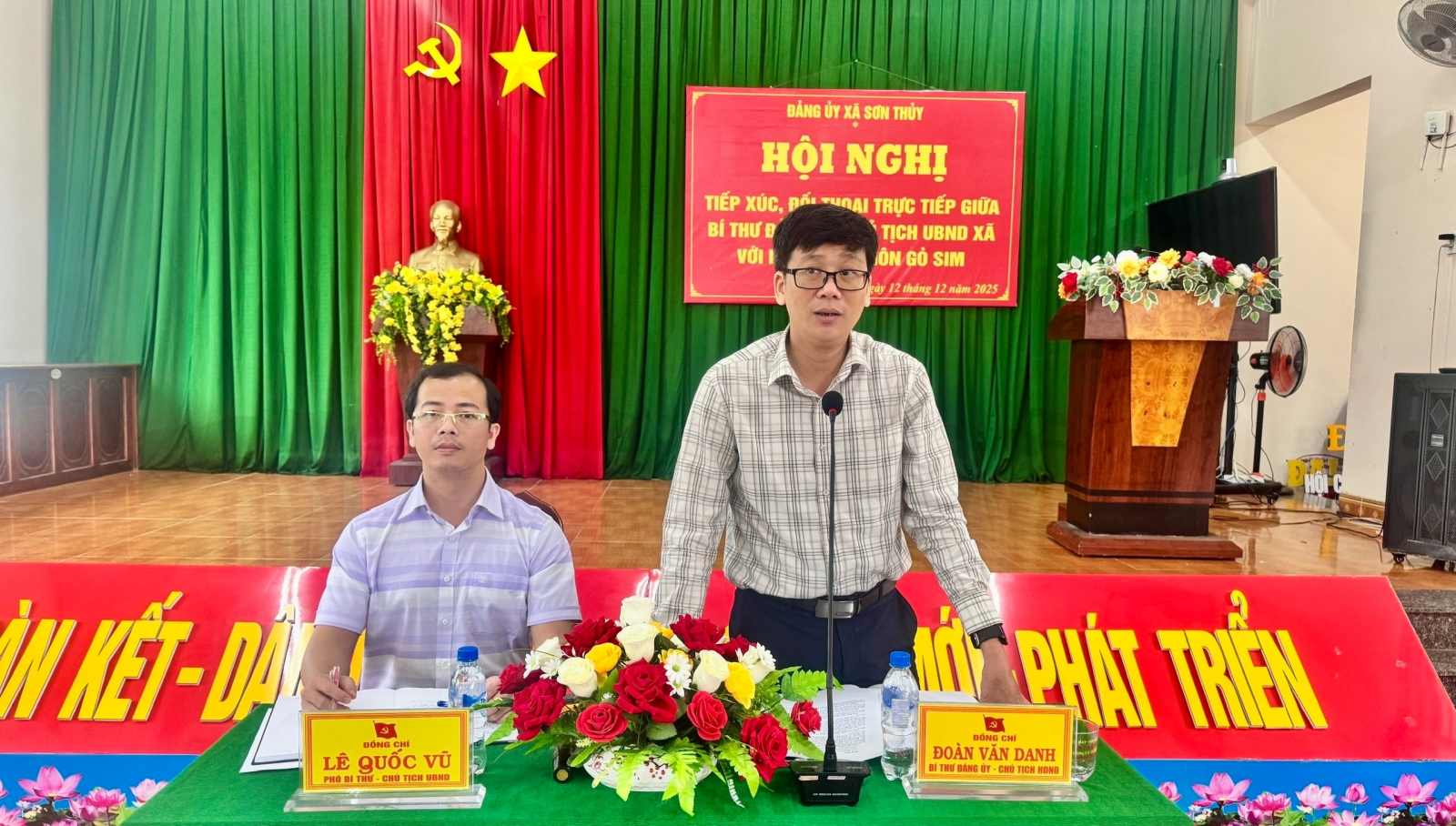 Sáng 12/12/2025, tại Nhà văn hóa xã, Đảng ủy xã Sơn Thủy đã tổ chức Hội nghị tiếp xúc, đối thoại trực tiếp giữa Bí thư Đảng ủy xã và Chủ tịch UBND xã với nhân dân thôn Gò Sim.