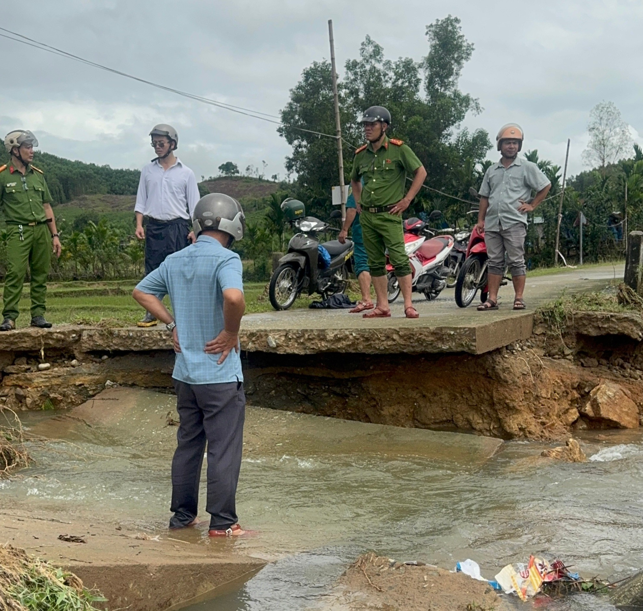 Cũng trong ngày 30/10/2025, các đoàn công tác của lãnh đạo Đảng ủy, UBND xã do đồng chí Lê Quốc Vũ, Phó Bí thư, Chủ tịch UBND xã cũng đã đi khảo sát tại nhiều khu vực bị ảnh hưởng do mưa lũ trên địa bàn 16 thôn trên địa bàn xã, ghi nhận tình trạng sạt lở đất, sa bồi thủy phá, nhà cửa, giao thông bị hư hỏng … đã ảnh hưởng đến đời sống, sản xuất, đi lại của nhân dân.