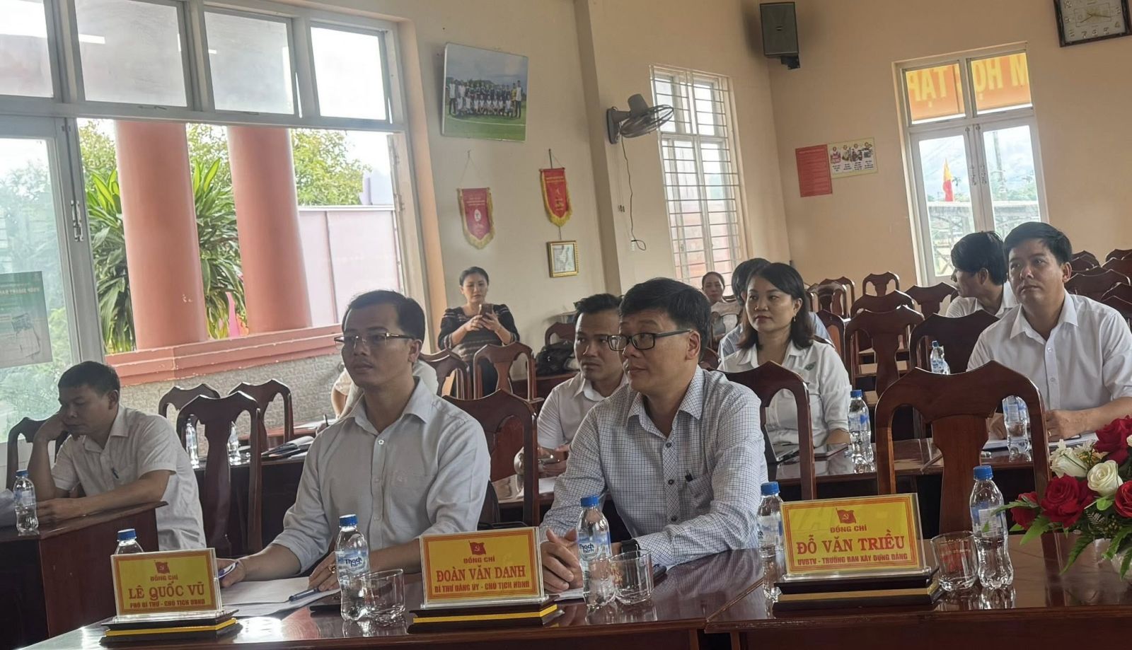Tham dự có đồng chí: Đoàn Văn Danh - Bí thư Đảng ủy, Chủ tịch HĐND xã; đồng chí Lê Quốc Vũ – Phó Bí thư Đảng ủy, Chủ tịch UBND, đồng chí Lưu Xuân Hà, Chủ tịch UBMTQVN xã, các đồng chí UVBTV, lãnh đạo các đơn vị, phòng chuyên môn thuộc UBND xã.